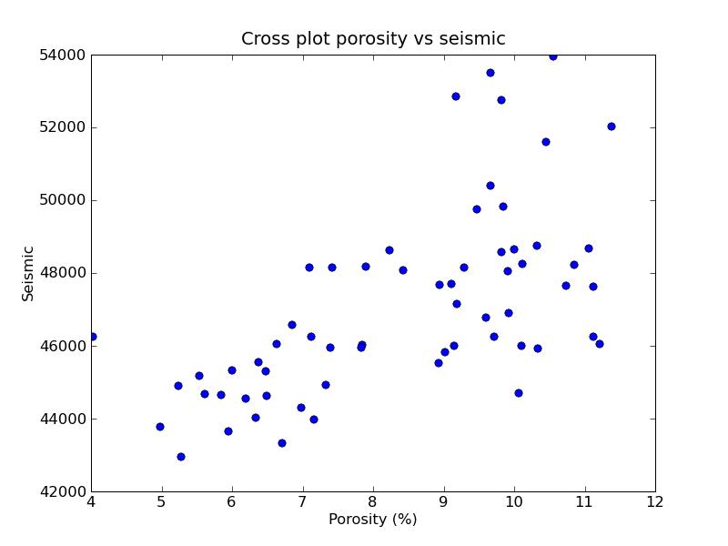 Correlation between porosity and seismic: 0.627627936802