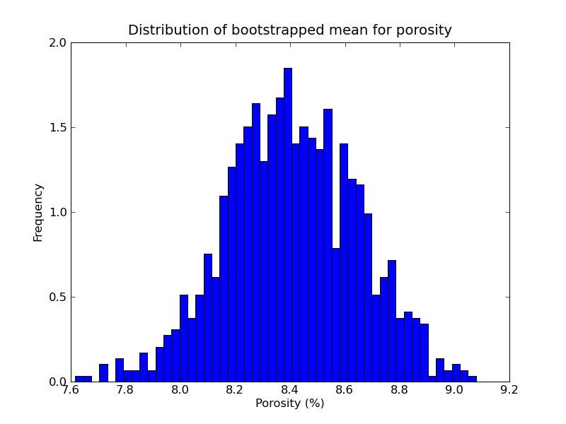 Doing boostrap for poro mean and correlation with seismic data...
